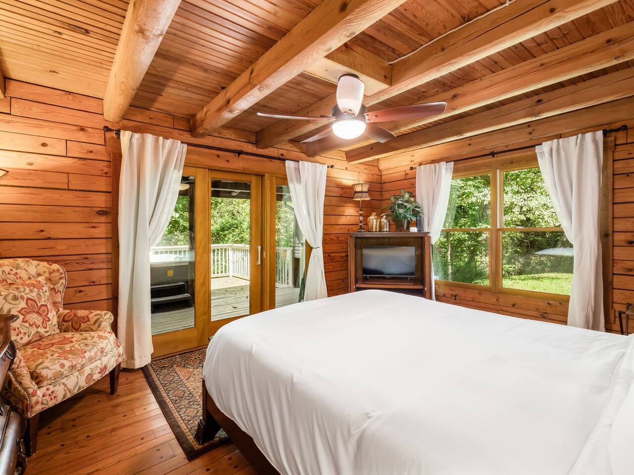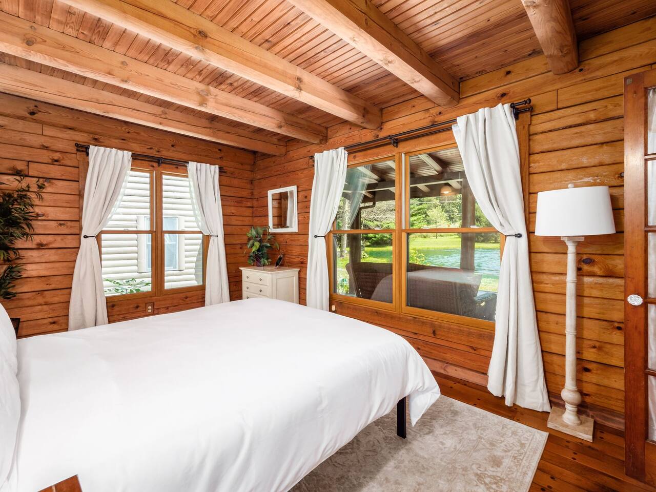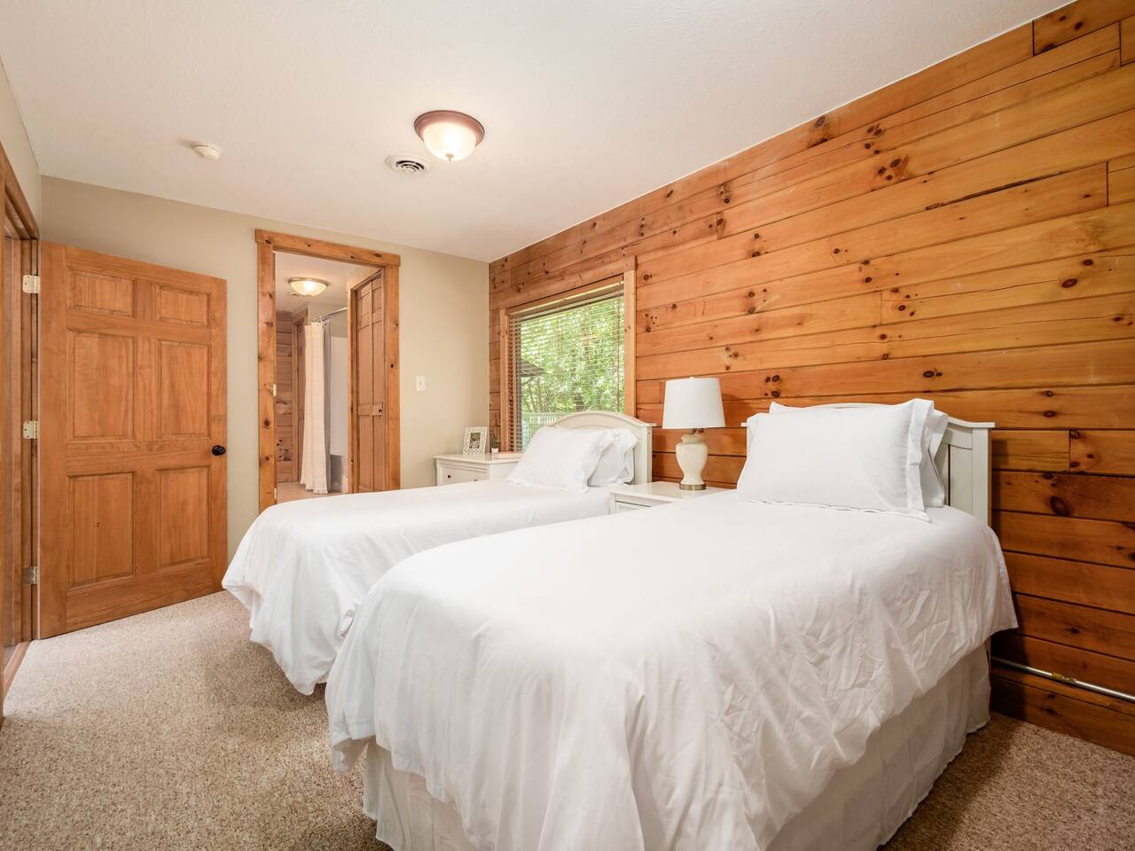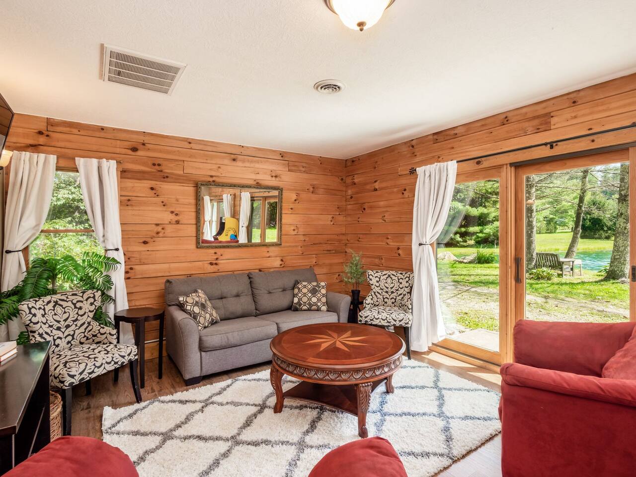 Guests have full private access to the entire property, including: • Two cabins (Main Lodge and Guest Cabin) with 4 bedrooms, 3 bathrooms, kitchens, and living areas • Three spring-fed fishing ponds with a paddle boat (catch-and-release) • Outdoor firepits, porches, and 8 acres of private woodland • 7-person hot tub located on the porch • Arcade games in the guest cabin 🚗 Parking: Plenty of private, on-site parking available for multiple vehicles. 🔐 Check-in: Easy self check-in with a secure smart lock. Your unique access code will be provided before arrival.
