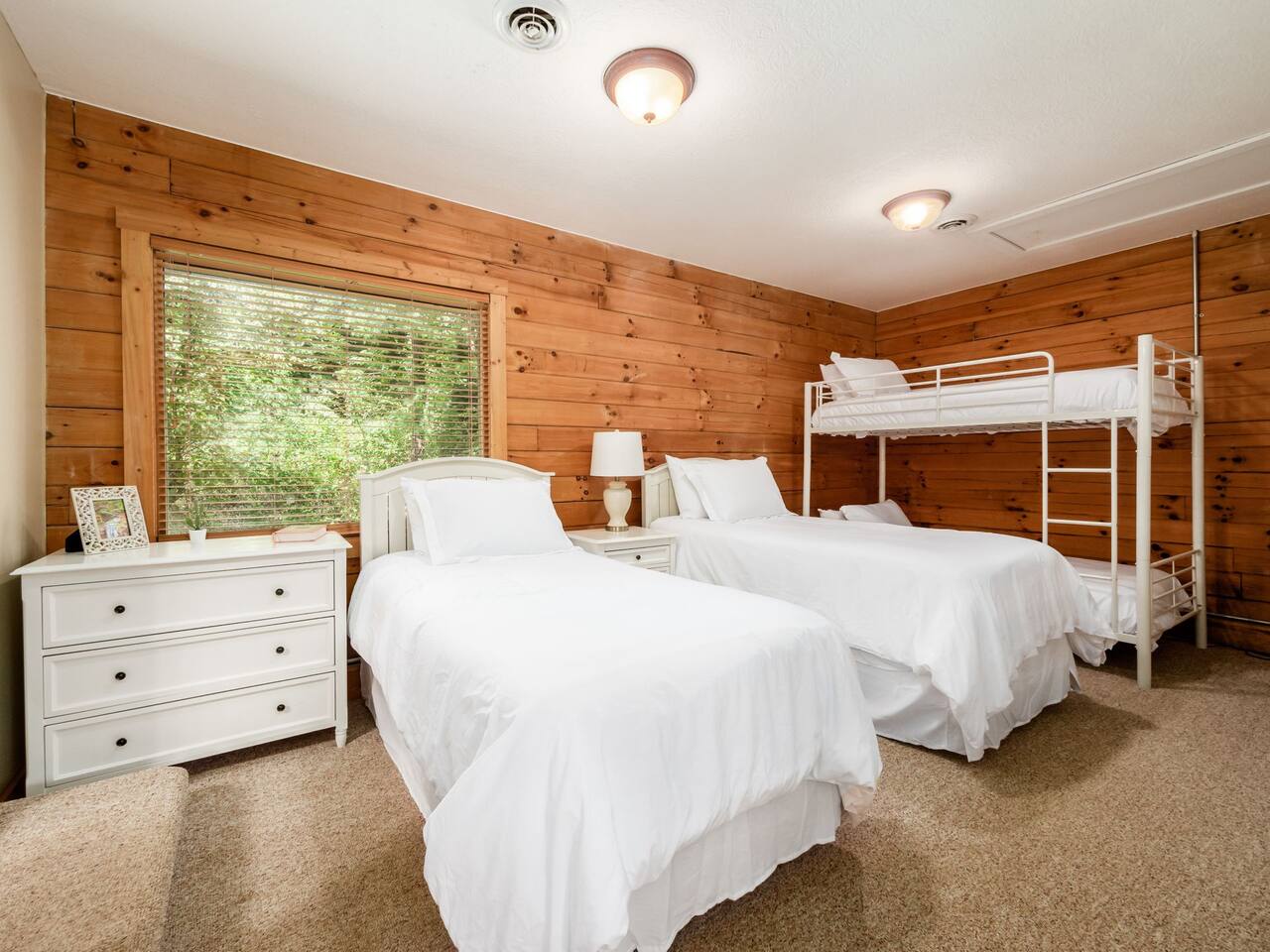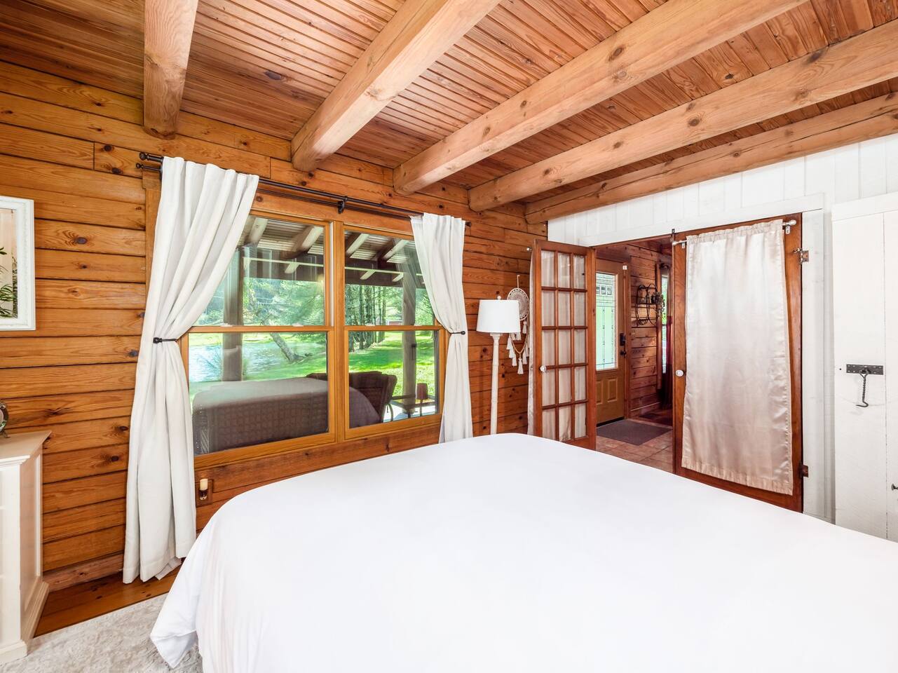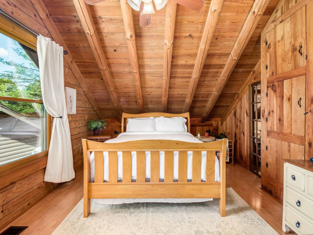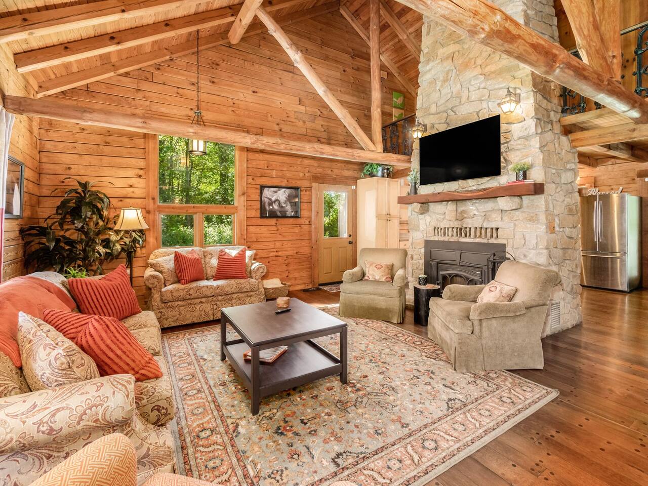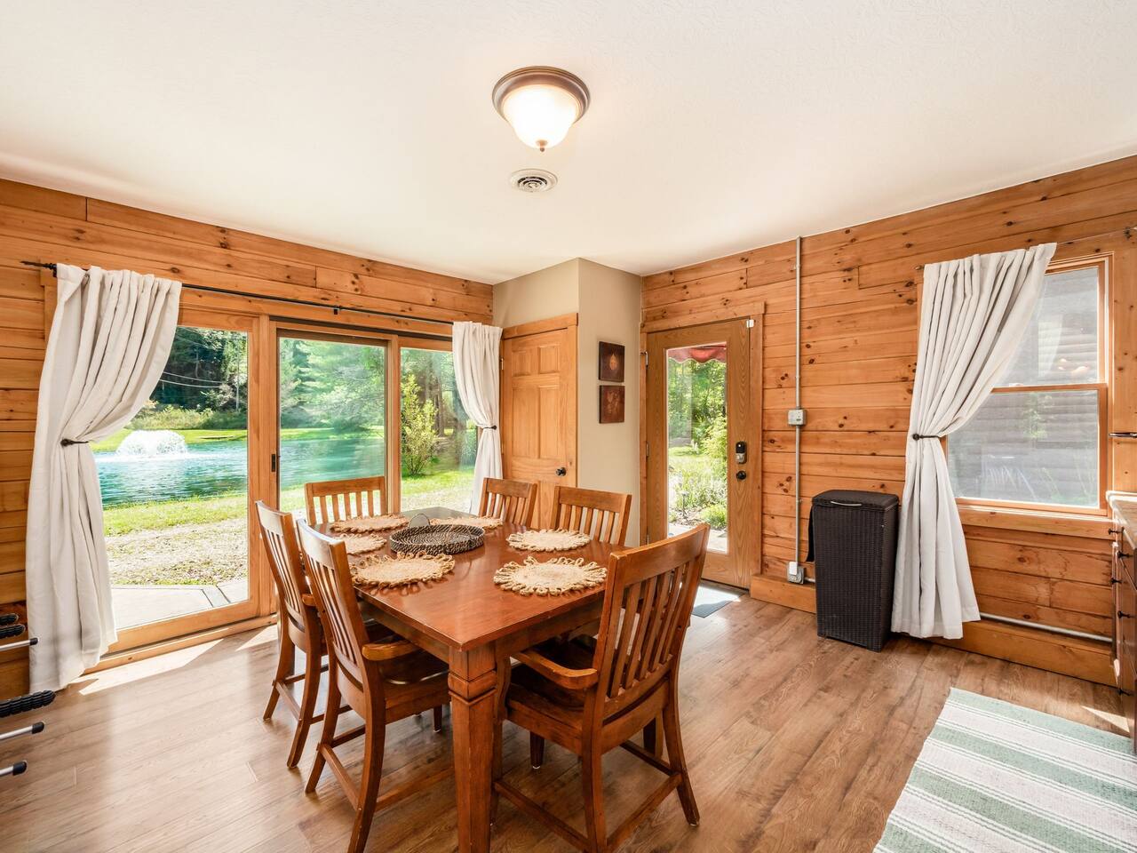 Guests have full private access to the entire property, including: • Two cabins (Main Lodge and Guest Cabin) with 4 bedrooms, 3 bathrooms, kitchens, and living areas • Three spring-fed fishing ponds with a paddle boat (catch-and-release) • Outdoor firepits, porches, and 8 acres of private woodland • 7-person hot tub located on the porch • Arcade games in the guest cabin 🚗 Parking: Plenty of private, on-site parking available for multiple vehicles. 🔐 Check-in: Easy self check-in with a secure smart lock. Your unique access code will be provided before arrival.