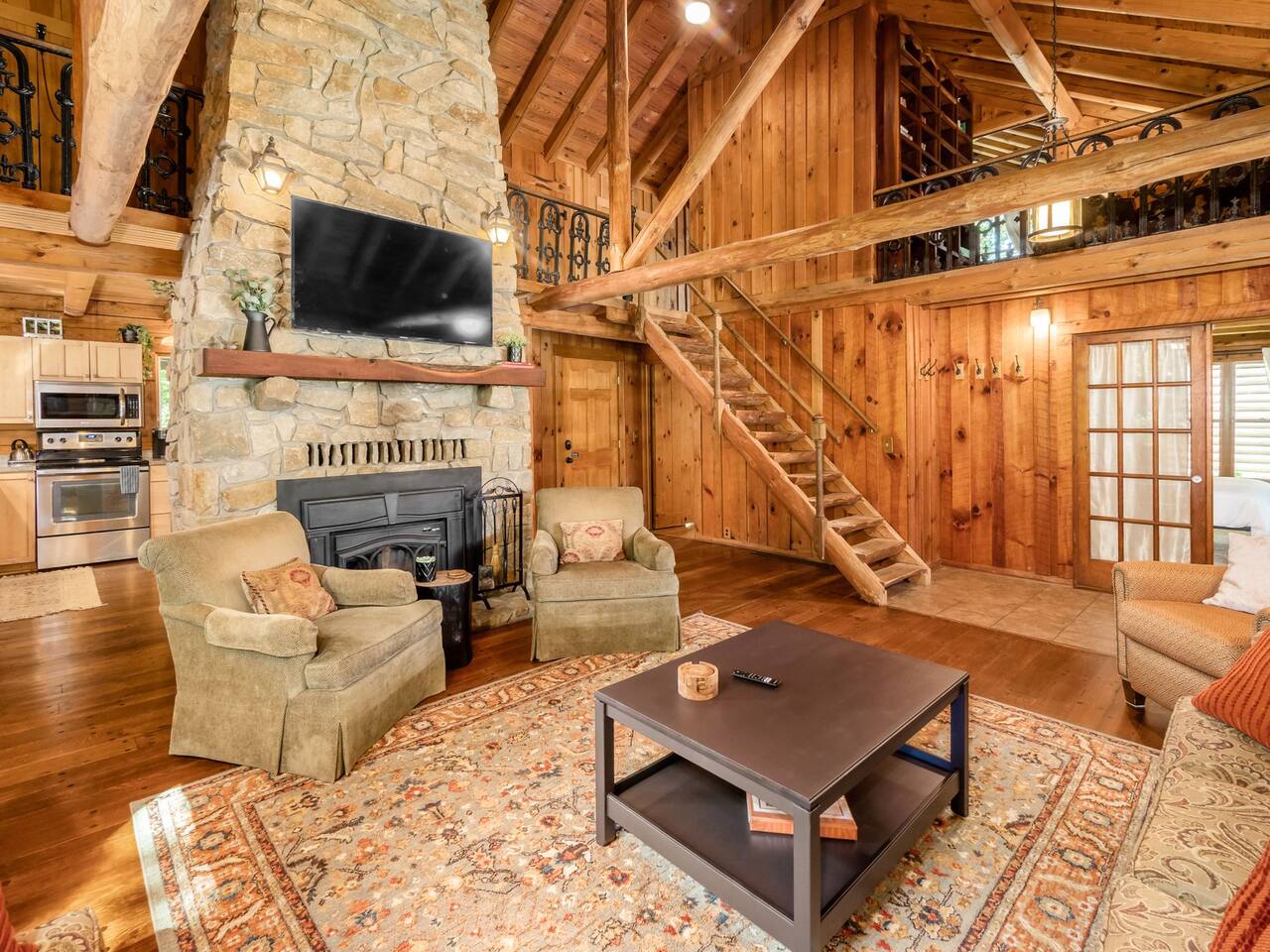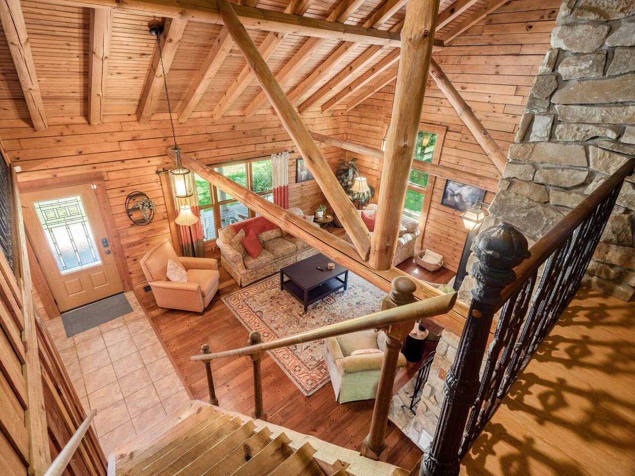 🏠 Welcome to The Lodge at Spring’s Hollow, a private Hocking Hills retreat featuring two separate cabins, fishing ponds, and plenty of outdoor space to enjoy together. Set on 8 private acres, this property is well-suited for families, reunions, and group getaways who value space, flexibility, and easy access to the area’s top trails. Ideal for families and groups planning ahead. ⸻ 🛏 Sleeping Arrangements (Sleeps 14) Main Lodge • Bedroom 1: Queen bed + twin rollaway • Bedroom 2: Queen bed + twin rollaway • Bedroom 3: Queen bed • Loft: Cozy reading nook and additional hangout space Guest Cabin • Bedroom: Two twin beds + twin bunk bed • Living room: Queen sleeper sofa The two-cabin layout allows groups to spread out while still staying connected. ⸻ 🍳 Kitchens & Dining • Main lodge with full kitchen and dining area • Guest cabin with a second kitchen and large dining table, ideal for shared meals ⸻ 🎮 Indoor Living & Entertainment • Arcade games located in the guest cabin • Comfortable living rooms with smart TVs • Indoor spaces designed for relaxing after a day outdoors ⸻ 🌅 Outdoor Highlights • Three spring-fed fishing ponds (catch-and-release) with paddle boat • Porches and outdoor seating areas • 7-person hot tub • Firepits for evening gatherings • Wooded acreage and walking areas throughout the property ⸻ Whether you’re spending the day fishing, hiking nearby Hocking Hills trails, or winding down by the fire, this property offers a comfortable home base for enjoying the area together.