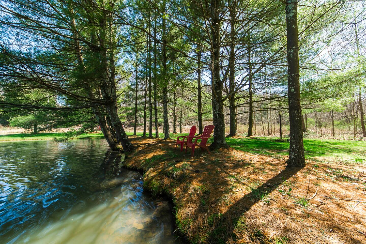 • Fishing ponds: The ponds are stocked for catch-and-release fishing. Guests are welcome to bring their own fishing gear. • Wildlife: As the property is surrounded by nature, you may see deer, raccoons, or other wildlife. Please enjoy observing from a distance. • Cell service & Wi-Fi: Due to the rural setting, cell service can vary by carrier. Wi-Fi is provided and works well for streaming and basic work needs. • Safety: Children should be supervised around the ponds and outdoor areas at all times. • Events & gatherings: The property is well-suited for families, reunions, and small group getaways. Parties or disruptive events are not permitted. This property offers a nature-forward Hocking Hills experience with modern comforts — ideal for guests who enjoy outdoor space, privacy, and easy access to the area’s trails and attractions.