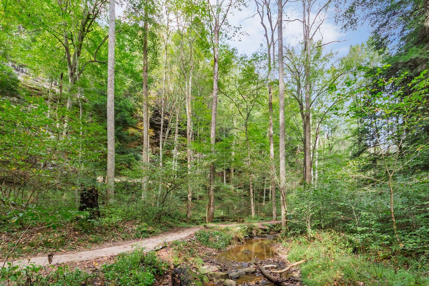 📍 Neighborhood The lodge is conveniently located just off the highway, offering easy access to Hocking Hills attractions without long gravel roads or difficult drives. While the entrance is near the road and some traffic may be visible, the property opens into 8 private acres with spring-fed ponds, wooded areas, and open space designed to feel retreat-like once you’re on the grounds. The layout of the land, water features, and outdoor spaces help create a sense of privacy and separation, while keeping you just minutes from hiking trails, caves, and local attractions. Nearby Highlights • Old Man’s Cave – hiking, waterfalls, and rock formations • Ash Cave – Ohio’s largest recess cave • Cedar Falls & Cantwell Cliffs – scenic hiking areas • Downtown Logan – dining, shops, and local breweries This location offers the best of both worlds: quick, convenient access to Hocking Hills and nearby towns, paired with private acreage where guests can relax, explore, and spend time together.