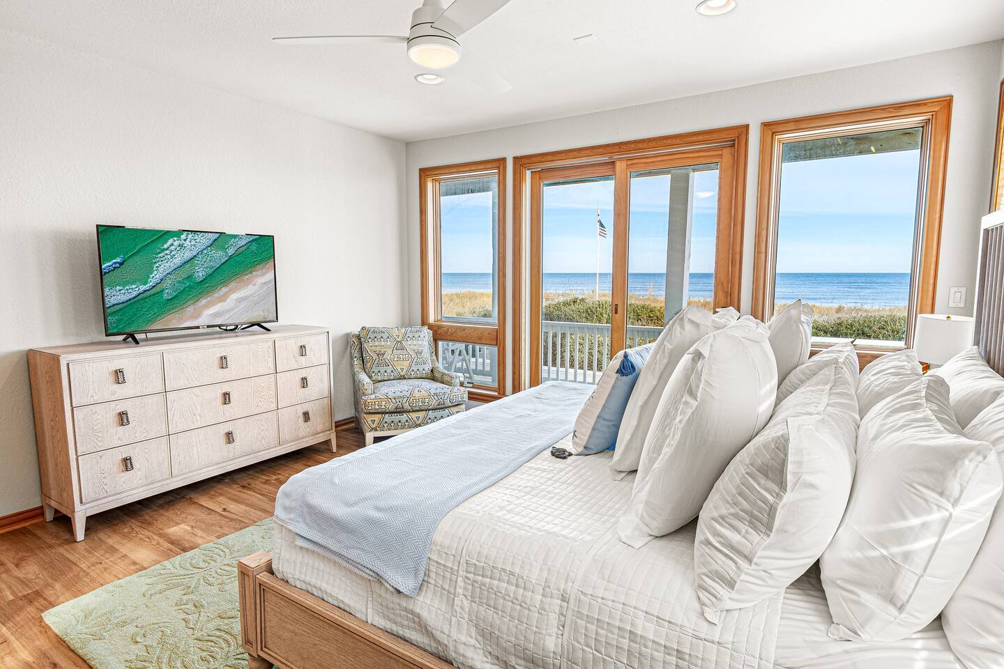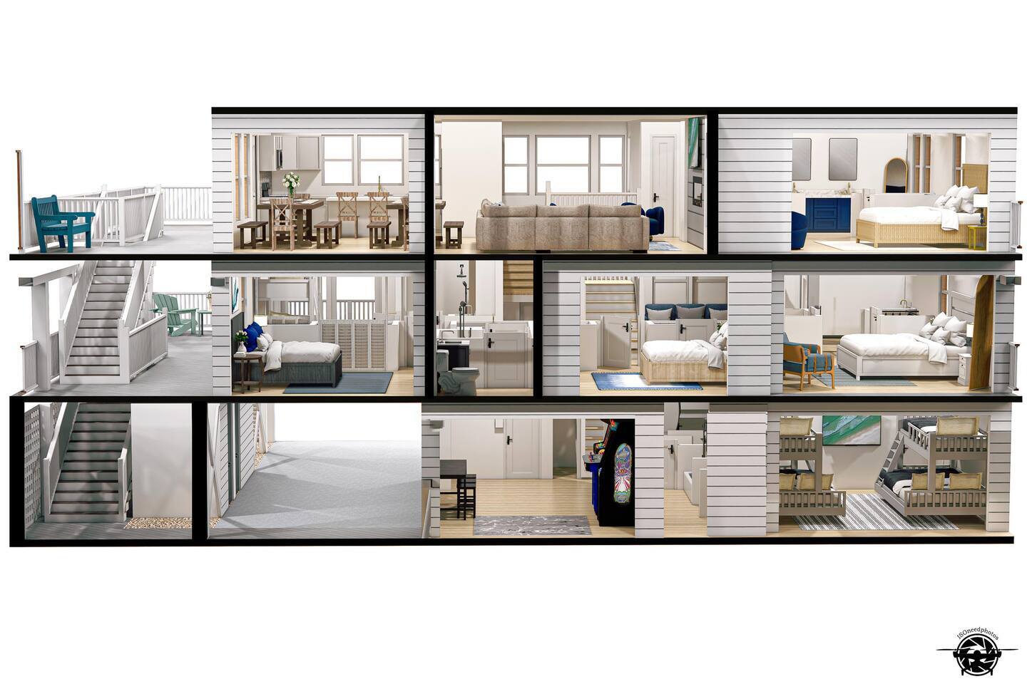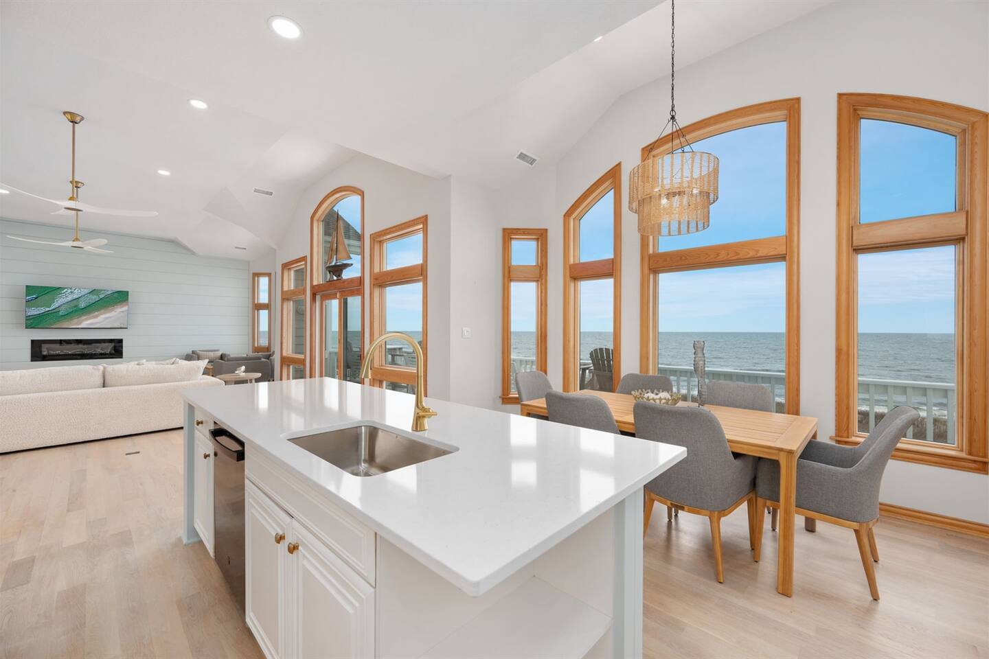 Serenity awaits at our lavish beachfront sanctuary, accommodating 16 guests. Immerse yourself in tranquility with a heated pool, blissful hot tub, and a mesmerizing fire pit. Indulge in leisure at the game room and savor moments of bliss at our curated coffee bar. With 360-degree views of the ocean and sound, every glance is a window to paradise. Your idyllic escape to the Outer Banks begins here – where relaxation meets opulence. Book now for an unrivaled coastal experience. Step into the extraordinary at our sensational oceanfront escape in South Corolla, NC just minutes from Duck! This is not just a vacation—it's an exhilarating coastal adventure for families and luxury seekers alike. "Private Heated Saltwater Pool is open from March 28 to October 24, 2025. OPTIONAL Pool Heater available for an additional fee during the following dates: March 28 – June 20, 2025: Fee June 21 – September 1, 2025: No Fee September 2 – October 24, 2025: Fee" Property Features: Private Beach Paradise: Your private boardwalk beckons you to the sandy shores, ensuring the ocean is not just a view but your personal playground! Sizzle by the Pool: Dive into the lap of luxury with your very own heated pool and decked-out oasis. Grill, chill, and create memories that sizzle! Sunrise Spectacle: Wake up to panoramic sunrise views over the ocean and bask in the glory of 360-degree ocean and sound panoramas—your party game will thank you! Game On!: Ground-level game room alert! Packed with arcade delights for all ages. Game on, laughter up, and fun unleashed! Coffee Connoisseur's Corner: Energize your days with a gourmet kitchen boasting stainless steel wonders and a coffee and tea station stocked with Peet's Coffee, Dunkin' Donuts K-cups, and a tea wonderland. The Space Details: ☆☆ BEDROOMS ☆☆ Master Bedroom 1 [MID LEVEL] - King bed / charging ports / en-suite private bathroom with new his & her vanity and sinks / shower / darkening shades / 60 inch SmartTV / fireplace / fan / Walkout to the mid deck with views of the Ocean. Bedroom 2 [MID LEVEL] - King bed / charging ports / private en-suit bathroom with shower / his & her vanity and sinks / 60 inch SmartTV / fireplace / fan / Easy walkout to second floor deck and views of the ocean Bedroom 3 [MID LEVEL] - King bed / charging ports / SmartTV / fan / private en-suit bathroom with shower / Easy walkout to walkout to porch with views of the sound Bedroom 4 [LOWER LEVEL] - King bed / charging ports / fan / SmartTV / full bathroom / Easy walkout to pool, hot tub, and private boardwalk to beach Bedroom 5 [LOWER LEVEL] - 2 full size beds / charging ports / full bathroom / Jack & Jill full bathroom / Easy access to pool, hot tub, and private boardwalk to beach Bedroom 6 [LOWER LEVEL] - 2 Twin Bunk Beds / charging ports / 32 inch SmartTV / Jack & Jill full bathroom / Easy access to pool, hot tub, and private boardwalk to beach Arcade Room [LOWER LEVEL] - stocked with arcade games, promises entertainment for guests of all ages Bathrooms: Total 4 Full Individual Bathrooms. 1 Jack and Jill bathroom on the lower level, and 1 half bathroom on the upper level - Lux selection of shampoo, conditioner, body wash and premium soap for your enjoyment and convenience. Family Room - large L sofa with epic ocean AND sound views / 70 in SmartTV with streaming services (Netflix, Disney+, PrimeVideo, HBOMax, etc) / Open room concept with tall ceilings, walk out deck facing the ocean and views of the sound. Two 8 seater dining tables, seating a total of 16 people. Stocked with fun board games for the family. Kitchen - New Pots, electric stoves, baking pans, utensils, dishware, French press, Keurig, standard teas, Kcups, frother, sugar, air fryer, blender, rice maker, waffle maker, bread makers and high chair for the little one and much more. Wrap around decks - The upper and mid level floor has a large amount of deck space, Adirondack and chairs recliners as well as the back porch with views of the sound. Laundry: NEW washers and dryers Location Highlights: This is your gateway to endless excitement in Corolla! Mini-golf, pier walks, fishing fiestas, wind surfing, and the thrill of First Flight adventure park—everything you crave is just a heartbeat away. Neighborhood Vibe: Experience the vibe —where ocean beach access, private sound front parks, and a blissful bike path along the Atlantic Ocean create a symphony of joy! Activities and Nearby Attractions: Surf the dunes, race the wind, dive into seafood wonders, and dance through vibrant festivals. Conveniently close to Elizabeth City, Norfolk/Virginia Beach, and Raleigh—the adventure is limitless! Special Features: Decked Delight: Savor the coastal breeze on your private decks—your personal front-row seat to nature's spectacle! Bike Bliss: Rent a bike for a spin along the scenic Atlantic path—because adventure is calling, and you're ready to answer! Ideal Guests: For families and luxury-loving thrill-seekers who don't just want a vacation but an annual tradition of awesomeness! Book now, and let the coastal magic of Outer Banks unfold before you. Your extraordinary escape is just a click away—seize the adventure! Private Heated Salt Pool is open from April 1 to Oct 27, 2024. OPTIONAL Pool Heat from April 1 - June 8, 2024, and Sept 2 - Oct 27, 2024, for an additional fee.