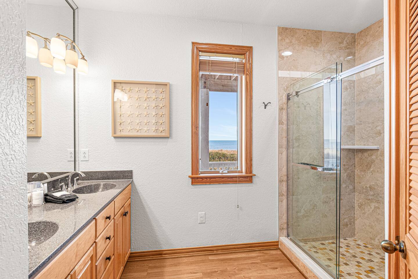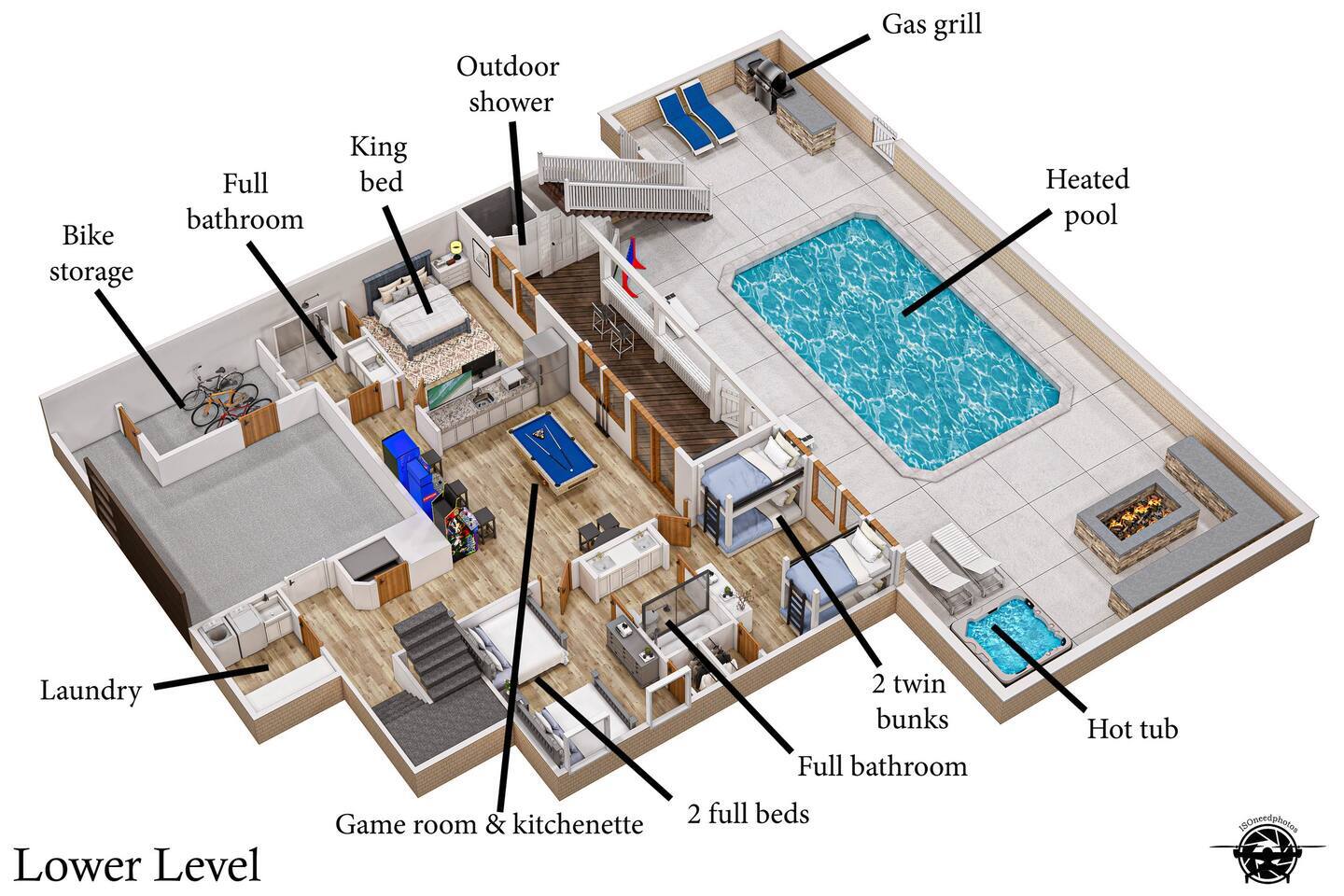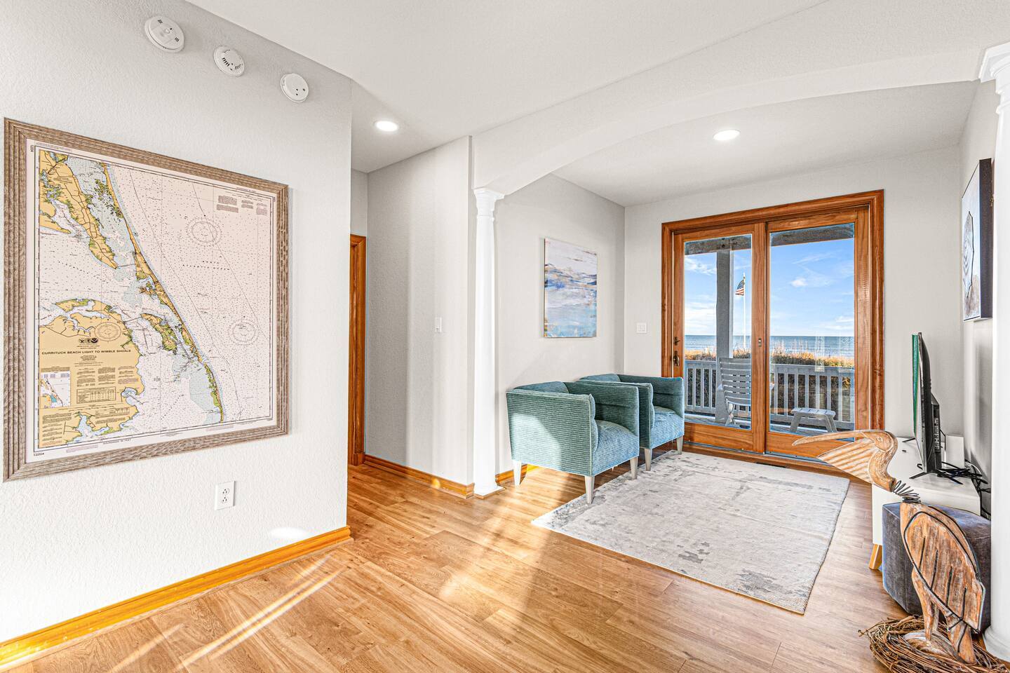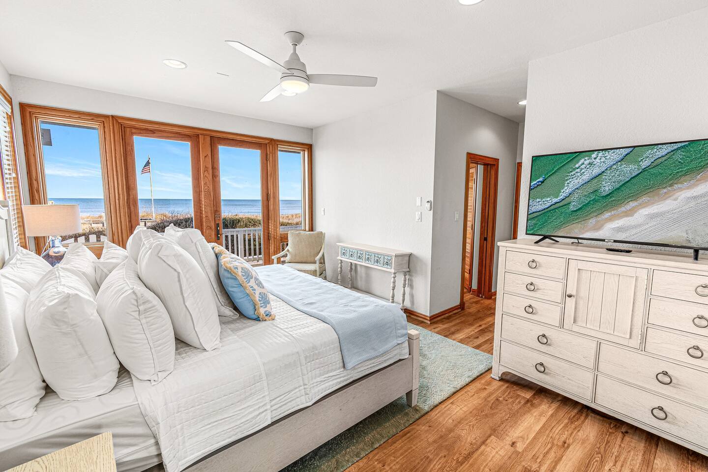 Serenity awaits at our lavish beachfront sanctuary, accommodating 16 guests. Immerse yourself in tranquility with a heated pool, blissful hot tub, and a mesmerizing fire pit. Indulge in leisure at the game room and savor moments of bliss at our curated coffee bar. With 360-degree views of the ocean and sound, every glance is a window to paradise. Your idyllic escape to the Outer Banks begins here – where relaxation meets opulence. Book now for an unrivaled coastal experience. Step into the extraordinary at our sensational oceanfront escape in South Corolla, NC just minutes from Duck! This is not just a vacation—it's an exhilarating coastal adventure for families and luxury seekers alike. "Private Heated Saltwater Pool is open from March 28 to October 24, 2025. OPTIONAL Pool Heater available for an additional fee during the following dates: March 28 – June 20, 2025: Fee June 21 – September 1, 2025: No Fee September 2 – October 24, 2025: Fee" Property Features: Private Beach Paradise: Your private boardwalk beckons you to the sandy shores, ensuring the ocean is not just a view but your personal playground! Sizzle by the Pool: Dive into the lap of luxury with your very own heated pool and decked-out oasis. Grill, chill, and create memories that sizzle! Sunrise Spectacle: Wake up to panoramic sunrise views over the ocean and bask in the glory of 360-degree ocean and sound panoramas—your party game will thank you! Game On!: Ground-level game room alert! Packed with arcade delights for all ages. Game on, laughter up, and fun unleashed! Coffee Connoisseur's Corner: Energize your days with a gourmet kitchen boasting stainless steel wonders and a coffee and tea station stocked with Peet's Coffee, Dunkin' Donuts K-cups, and a tea wonderland. The Space Details: ☆☆ BEDROOMS ☆☆ Master Bedroom 1 [MID LEVEL] - King bed / charging ports / en-suite private bathroom with new his & her vanity and sinks / shower / darkening shades / 60 inch SmartTV / fireplace / fan / Walkout to the mid deck with views of the Ocean. Bedroom 2 [MID LEVEL] - King bed / charging ports / private en-suit bathroom with shower / his & her vanity and sinks / 60 inch SmartTV / fireplace / fan / Easy walkout to second floor deck and views of the ocean Bedroom 3 [MID LEVEL] - King bed / charging ports / SmartTV / fan / private en-suit bathroom with shower / Easy walkout to walkout to porch with views of the sound Bedroom 4 [LOWER LEVEL] - King bed / charging ports / fan / SmartTV / full bathroom / Easy walkout to pool, hot tub, and private boardwalk to beach Bedroom 5 [LOWER LEVEL] - 2 full size beds / charging ports / full bathroom / Jack & Jill full bathroom / Easy access to pool, hot tub, and private boardwalk to beach Bedroom 6 [LOWER LEVEL] - 2 Twin Bunk Beds / charging ports / 32 inch SmartTV / Jack & Jill full bathroom / Easy access to pool, hot tub, and private boardwalk to beach Arcade Room [LOWER LEVEL] - stocked with arcade games, promises entertainment for guests of all ages Bathrooms: Total 4 Full Individual Bathrooms. 1 Jack and Jill bathroom on the lower level, and 1 half bathroom on the upper level - Lux selection of shampoo, conditioner, body wash and premium soap for your enjoyment and convenience. Family Room - large L sofa with epic ocean AND sound views / 70 in SmartTV with streaming services (Netflix, Disney+, PrimeVideo, HBOMax, etc) / Open room concept with tall ceilings, walk out deck facing the ocean and views of the sound. Two 8 seater dining tables, seating a total of 16 people. Stocked with fun board games for the family. Kitchen - New Pots, electric stoves, baking pans, utensils, dishware, French press, Keurig, standard teas, Kcups, frother, sugar, air fryer, blender, rice maker, waffle maker, bread makers and high chair for the little one and much more. Wrap around decks - The upper and mid level floor has a large amount of deck space, Adirondack and chairs recliners as well as the back porch with views of the sound. Laundry: NEW washers and dryers Location Highlights: This is your gateway to endless excitement in Corolla! Mini-golf, pier walks, fishing fiestas, wind surfing, and the thrill of First Flight adventure park—everything you crave is just a heartbeat away. Neighborhood Vibe: Experience the vibe —where ocean beach access, private sound front parks, and a blissful bike path along the Atlantic Ocean create a symphony of joy! Activities and Nearby Attractions: Surf the dunes, race the wind, dive into seafood wonders, and dance through vibrant festivals. Conveniently close to Elizabeth City, Norfolk/Virginia Beach, and Raleigh—the adventure is limitless! Special Features: Decked Delight: Savor the coastal breeze on your private decks—your personal front-row seat to nature's spectacle! Bike Bliss: Rent a bike for a spin along the scenic Atlantic path—because adventure is calling, and you're ready to answer! Ideal Guests: For families and luxury-loving thrill-seekers who don't just want a vacation but an annual tradition of awesomeness! Book now, and let the coastal magic of Outer Banks unfold before you. Your extraordinary escape is just a click away—seize the adventure! Private Heated Salt Pool is open from April 1 to Oct 27, 2024. OPTIONAL Pool Heat from April 1 - June 8, 2024, and Sept 2 - Oct 27, 2024, for an additional fee.