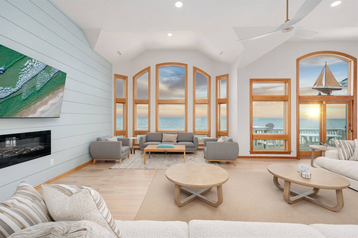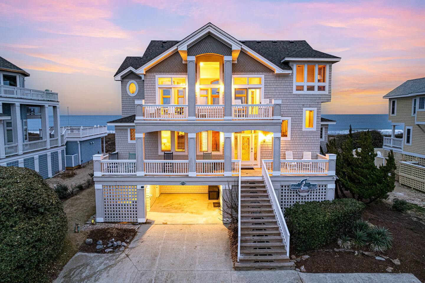 Serenity awaits at our Oceanfront sanctuary in Pine Island in south Corolla, NC! This luxurious retreat boasts a private oceanfront heated pool, hot tub, firepit, and game room. Revel in 360° ocean and sound views, sip from a curated coffee bar, and stroll to the beach from our private boardwalk, just through the pool. Perfect for families or luxury seekers, enjoy stunning sunrises and coastal adventures amid blooming dunes. Book now for an unrivaled Outer Banks escape!